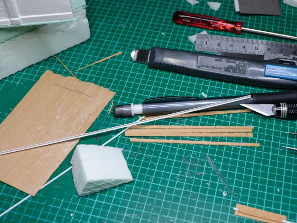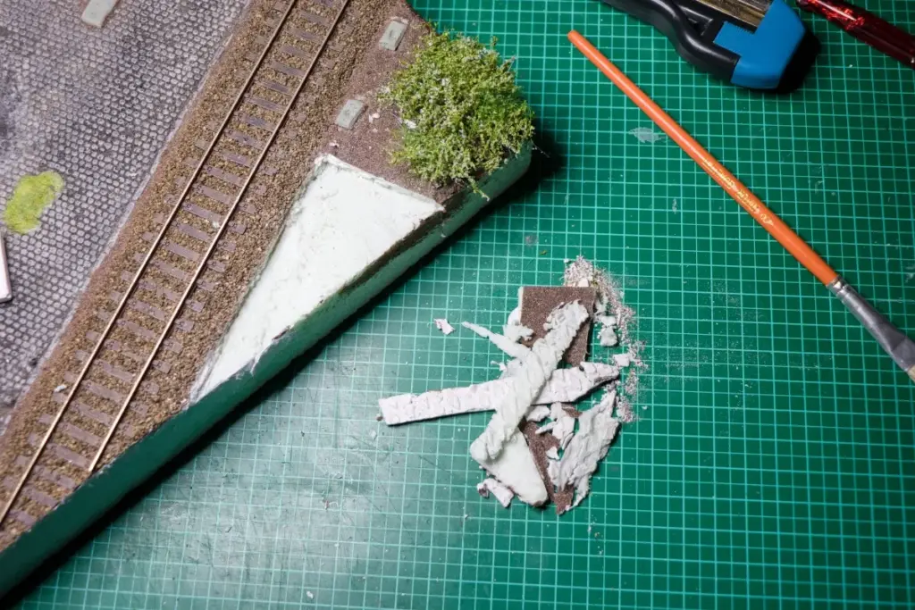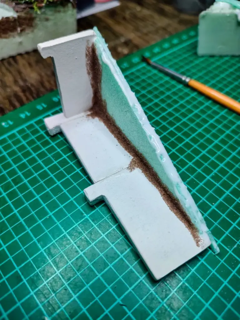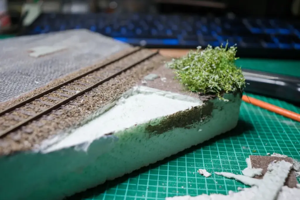 Es wird grün auf dem Diorama und ein weiterer Schuppen entsteht. Gleichzeitig kann das Fundament des Kranes eingepasst werden.