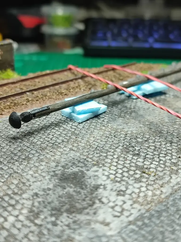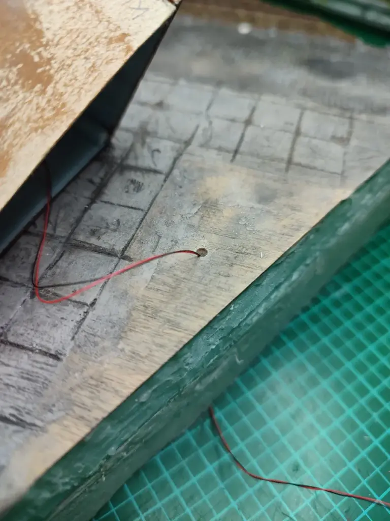 Doch leider ist mir beim Test der Verkabelung und der LED-Helligkeit ein Kabel abgerutsch und plötzlich waren 6,5 Volt für zwei LED’s, die der Bahnhofsleuchte und vom Güterschuppen, das Ende und gingen in Rauch auf. Ich werde später entscheiden, ob ich versuchen werde die LED’s zu ersetzen.