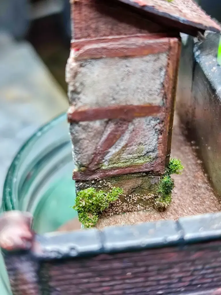 Es kommt Farbe ins Spiel und weitere Verwitterung.Der Schuppen wird weiter vervollständigt. Als Dach kommt ein Probestück von modellkreationen.de – Herzziegel mattrot – zur Anwendung, welches einer Bestellung beilag. Damit …