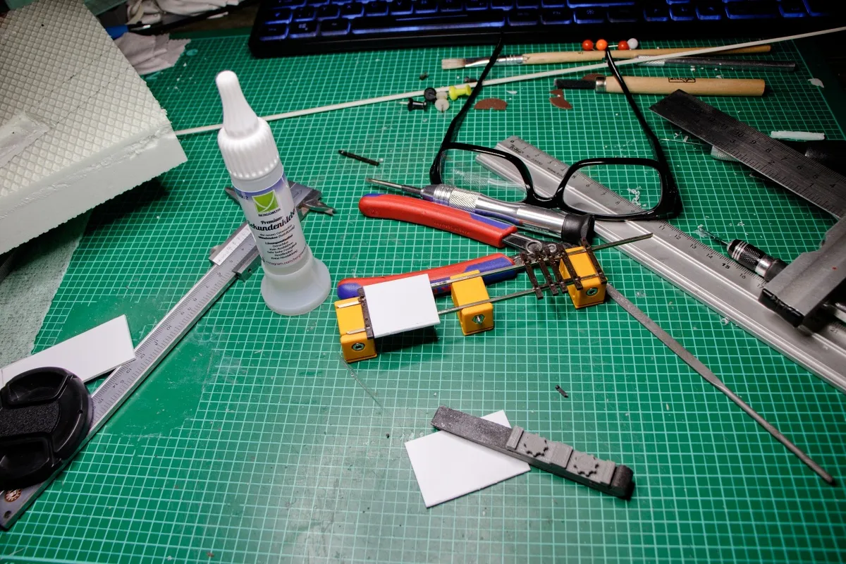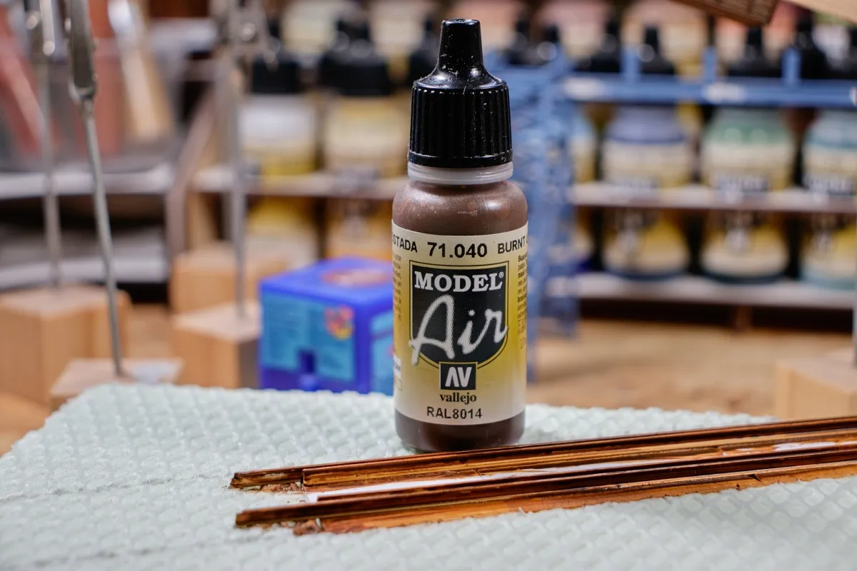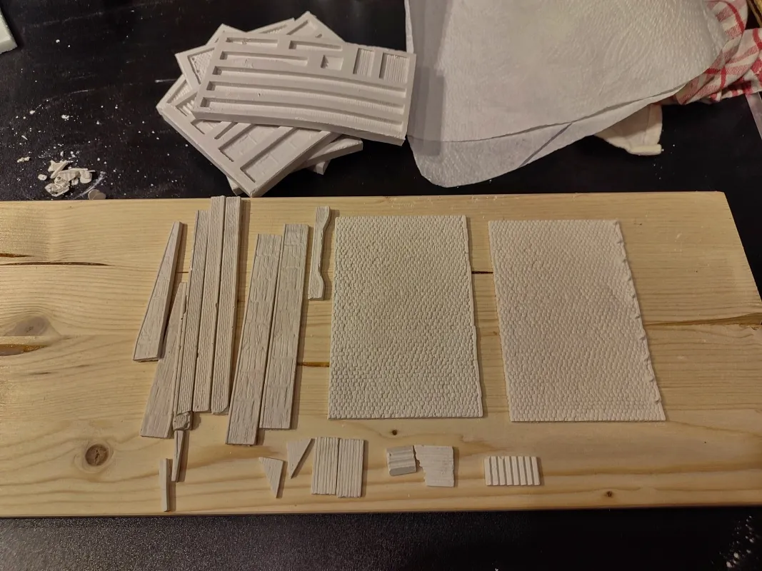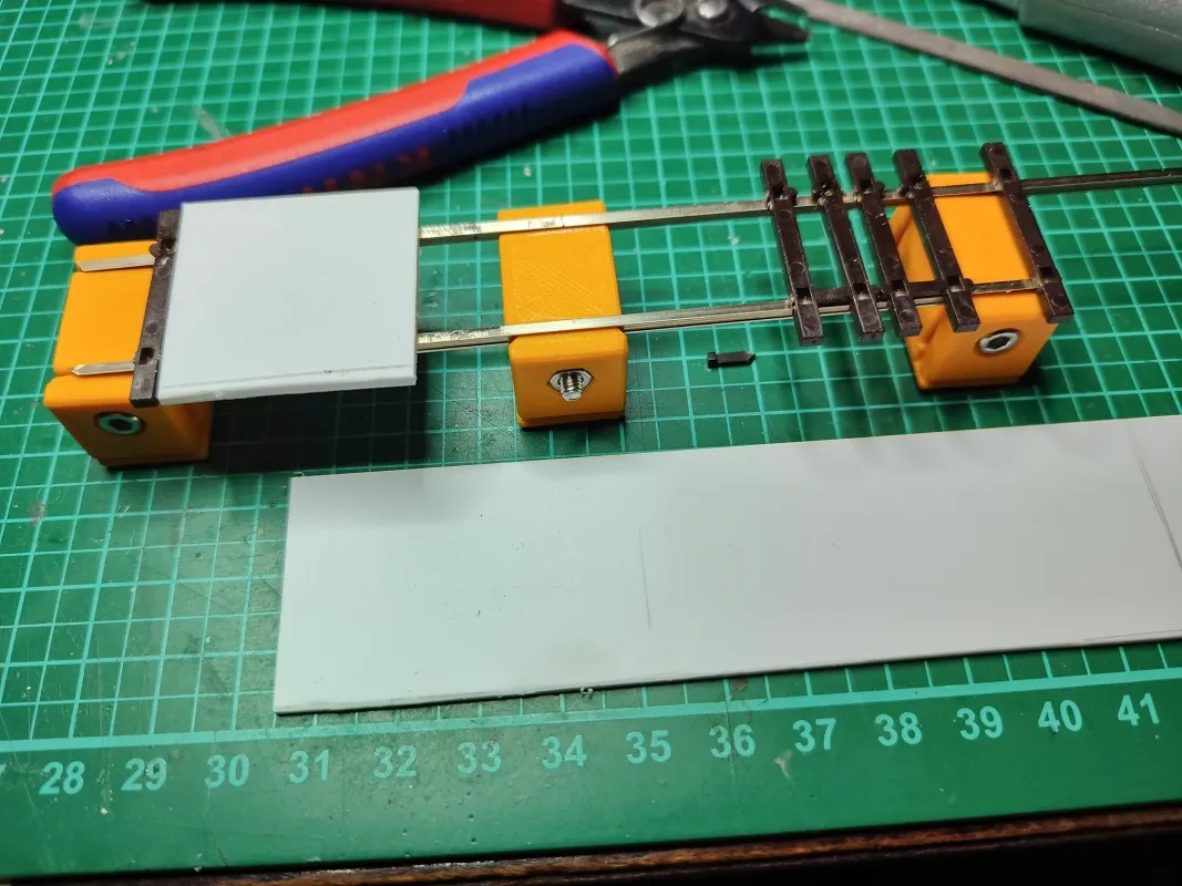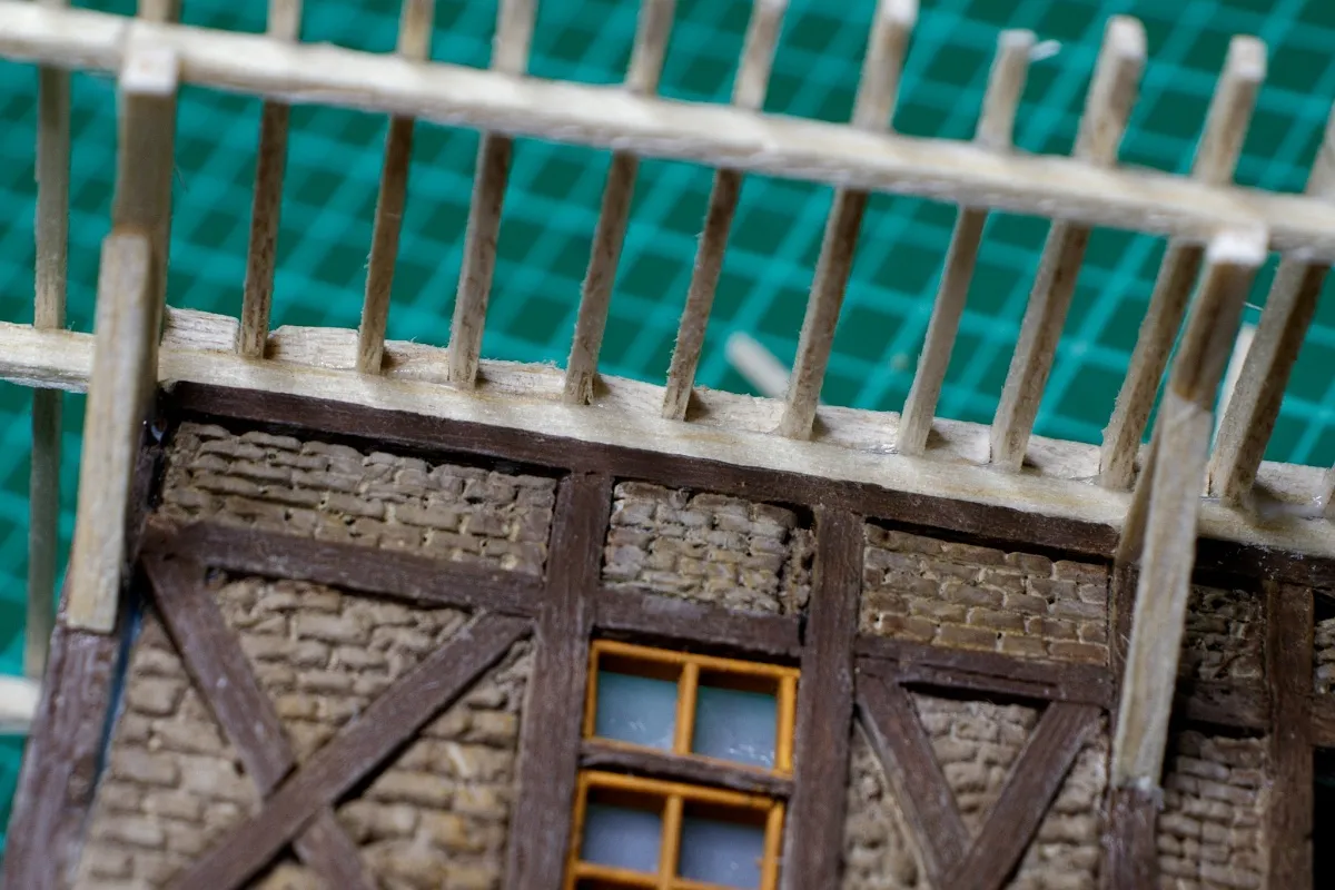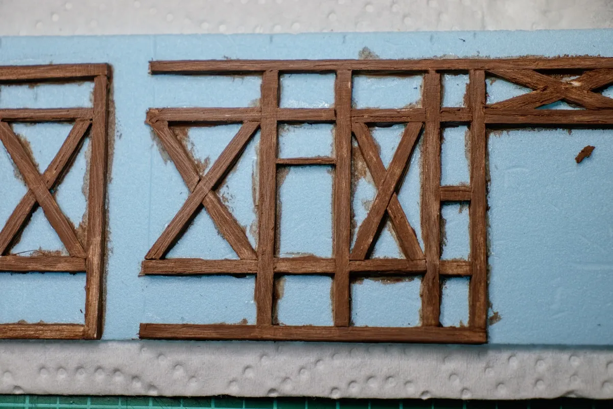 Diorama Rampe Farben für die LadestraßeFarbmuster bei einem Gipsstück.Die Ladestraße ist fertig - DetailaufnahmeDie Ladestraße ist fertigDie Ladestraße ist fertig verspachteltDie Ladestraße ist fertig verspachteltBergswerks Modellbauspachtel wird genutztDie Ladestraße ist fertig verspachteltDie Ladestraße ist fertig - GesamtübersichtDie Ladestraße ist fertig - DetailaufnahmeDie Ladestraße ist fertig - DetailaufnahmeDie Ladestraße ist fertig - GesamtübersichtDie Ladestraße ist fertig - Detailaufnahme... ein aufgefülltes Loch.... noch zu symstrischVerfahrensweise für das selbsthergestelltes KopfsteinpflasterZwischen Gleis und "Gipsstraße" fülle ich mit selbst geritzte Straße gefülltVergleich geritztes / geprägtes Styrofoam gegen Gipsabdruck aus der SpörleformEinbau der Tür und Stützen für den Träger. Erste BemahlungAbgüsse von Spörleform werden zurechtgelegtDetailaufnahme des LagerschuppensÜbersicht des DioramasEinritzen der Fläche auf der RampeDetails der LagertürTür zum Lagerschuppen. Auch die Winkel an der Tür werden versucht darzustellenEinbau der Tür zum Lagerschuppen und eines Doppel-T-Trägers aus KranschieneStellprobe mit LagerschuppenDteailaufnahme vom LagerschuppenStellprobeMit Modellbauspachtel von Bergswerk bekommt die Rampe eine DeckschichtStellprobe mit Deckschicht auf der RampeDie Rampe bekommt eine DeckschichtFertiges Dach - gealtert und mit KupferrinneVersuch der "Verkupferung" der Dachkante mit Liquid Copper Nr. 797 von vallejoStellprobe des Lagerschuppens auf dem DioramaVersuch der "Verkupferung" der Dachkante mit Liquid Copper Nr. 797 von vallejoStellprobe des Lagerschupppens auf dem DioramaAlterung des DachesUnterseite des Daches mit brauner Farbe eingestrichen.Der "Übeltäter" - Leider löst der Sekundenkleber die Färbung des "Kupferfolie"Leider löst der Sekundenkleber die Färbung des "Kupferfolie"Einfassung des Daches mit PVC-L-ProfilenAbmessung der Kupferfolie für die KupfereinfassungDetailaufnahme des Daches nach der BemalungDetailaufnahme des Daches nach der BemalungDetailaufnahme des Daches nach der BemalungDetailaufnahme des Daches nach der BemalungEinfärben des Unterbaues mit brauner FarbeNeuer Versuch des Daches. Das Sperrholz wird eingeritzt. Ähnlich einer HolzlattungWölbung des Daches nach dem trocknenDetailaufnahme der ungewollten Wölbung des Daches durch den HolzleimLeider wölbt sich das Dach durch den Kleber (Holzleim)Das Dach bekommt eine Dachkante aus PVC-ProfilenDas Dach bekommt eine Dachkante aus PVC-ProfilenProbeliegen des DachesProbeliegen der DachesStruktur / Feinheit / Farbe des Schleifpapiers (P400)Auf ein Träger sind Striche für die Breite der Bahnen aus SchleifpappierRückseite des Schleifpapiers mit Kennzeichung P400Detailaufnahme vom DachDetailaufnahme vom DachEin Stück nache dem anderenDetailaufnahme vom DachDetailaufnahme. Auch zwischen den Sparren wird aufgefülltUnterbau des DachesUnterbau des Daches ist fertigHolz für das DachDetailaufnahme der SparrenSparren des DachesSparren des DachesAbstützung der BalkenDie ersten Balken für das DachDie Wände des Lagerschuppens - StellprobeColoriereung der FensterStellprobeKurze Wand - Gefache fertig und die Fenster sind drin.Lange Wand - Gefache fertig und die Fenster sind drin.Aus dem "Muster" werden die Ziegel ausgeschnitten und eingefügt - 1:1Die "einfachen" Gefache sind fertigJedes einzelne Gefache wird mit Ziegel ausgefüllt.Erstellung der Zeigel für das Kreuzgefache. Das Kreuz wurde zuerst eingedrückt und dann die Ziegel eingeritzt.Jedes einzelne Gefache wird ausgefüllt1. Gefache mit ZiegelwandSupermakro ... Zieglwand1. Colorierung mit steingrauZiegelwand zum Vergleich eine 1-Cent-Münzefertige Ziegelwand für die GefacheErstellung ZiegelwandStellprobe der WändeDetailaufnahme StänderwerkStänderwerk mit Abtönfarbe braun bemaltDetailaufnahme. Das Ständerwerk hat Farbe bekommenVergleich Zeichnung un ModellDas Ständerwerk für die beiden Wände steht.Immer weider vergleichen ....geritzte Ziegelwand, Ständerwerk und Figur zur Probe1. Ständerwek und Test, ob das Verhältnis stimmtVersuch einer Ziegelwand1. Versuche eine ZiegelwandZeichnung 1:1 beider Wände des LagershuppensDie Rampe mit Grundrissplatte des LagerhausesStellprobe der Rampe. Mit Pins ist der Grundriss des Lagerhauses auf der Rampe zusehenalles eingespachtelt, graviert und die Rampe ist im Rohbau fertigArbeitstisch zum gießen der FormenGießen der Gipsteile aus SpörleformenEingravieren der Stöße zu den Beton-PlattenÜbersicht von oben.Stellprobe mit RampewändeErste Schicht ModellbauspachtelAbkleben der Gleise, bevor Spachtel drauf kommtDamit keine weiß durchscheint, wird alles mit Revellfarben angestrichenZuerst kommt 2mm Trittschalldämmung und dann Modelllbauspachtel von BergswerkFarbe getrocknetDetailaufnahme vom Farbauftrag mit RevellfarbenZweiter Farbauftrag mit Revell Rost mattRost für die GleiseErster Farbauftrag für die GleiseLinks aufgebohrt und verschliffen. Rechts Ursprung aus dem BausatzRost für die Gleise mit Burnt Umper von VallejoÜberblick aller Teile während dem ZusammenbausJede gegossene Platte, auch wenn kaputt, wird genutzt.Lage auf dem Diorame. Perfekt.Test mit den Radsätzen, wie weit kann ich mit den T-Profilen an die SchienenGanz schön eng. Aber es ist ein Diorama und dafür ist es gut.Fertiges Schienenstück für die StraßeDie T-Profile sind verklebt.Test, ob die Idee mit dem T-Profil so passt und die Räder genug Spiel haben.Basteltischansicht.Benutzter Sekundenkleber von BergswerkErstes Teil ist geklebtAnrauen des Polystorol für das kleben.Beide Gleise sind mit Sekundenkleber auf das Polystorol geklebtGenaues ausrichten der Gleise in den Gleisspanner3 mm Polystorol wird auf die Gleise geklebt.Genaues einspannen der Schienen in die GleisspannerAnrauen der Unterseite der Schienen, damit sie besser kleben.Inspiration aus dem Buch "Perfekt bis ins Detail"Erster Versuch das Gleis zu versenken.Mein Basteltisch nach dem ersten Basteltag.Gle