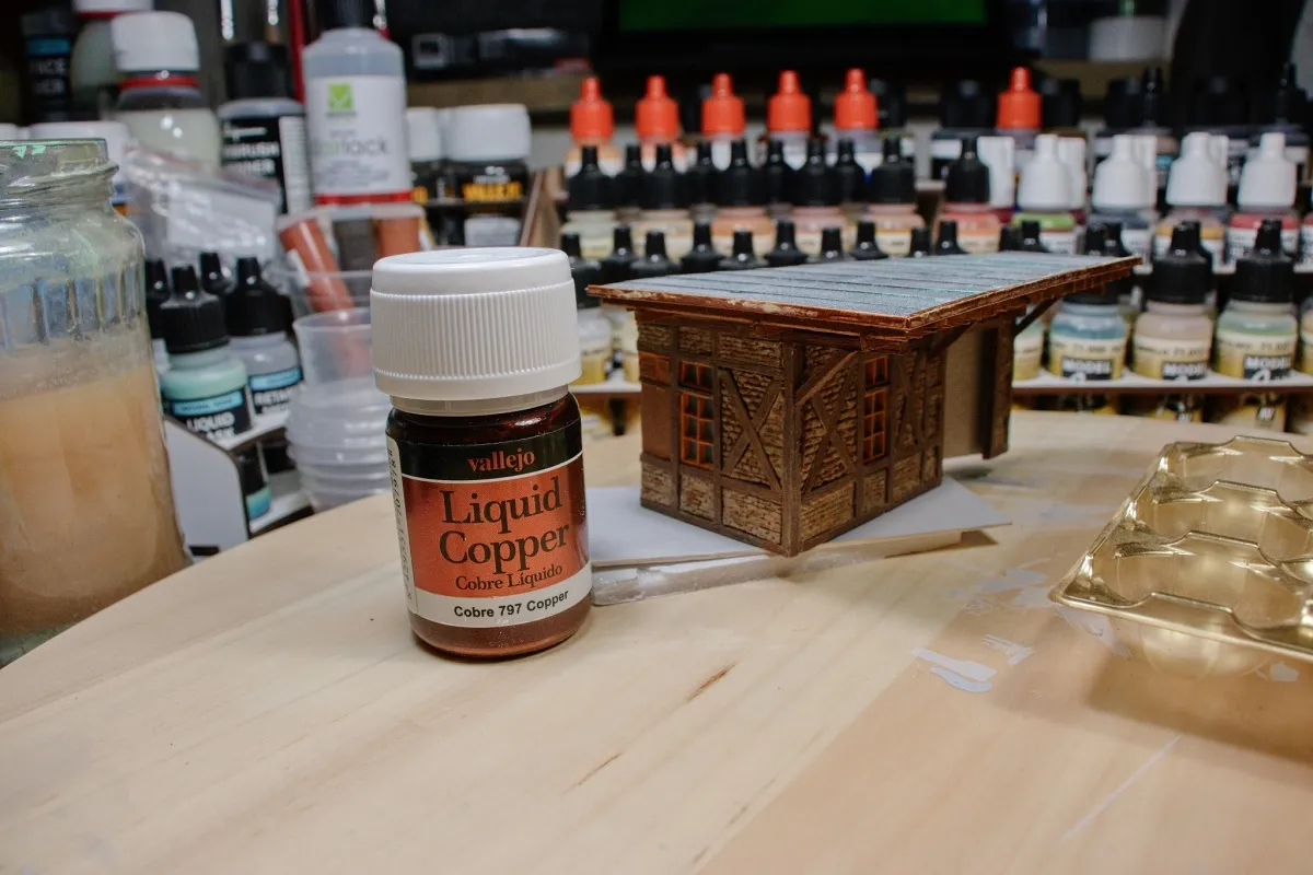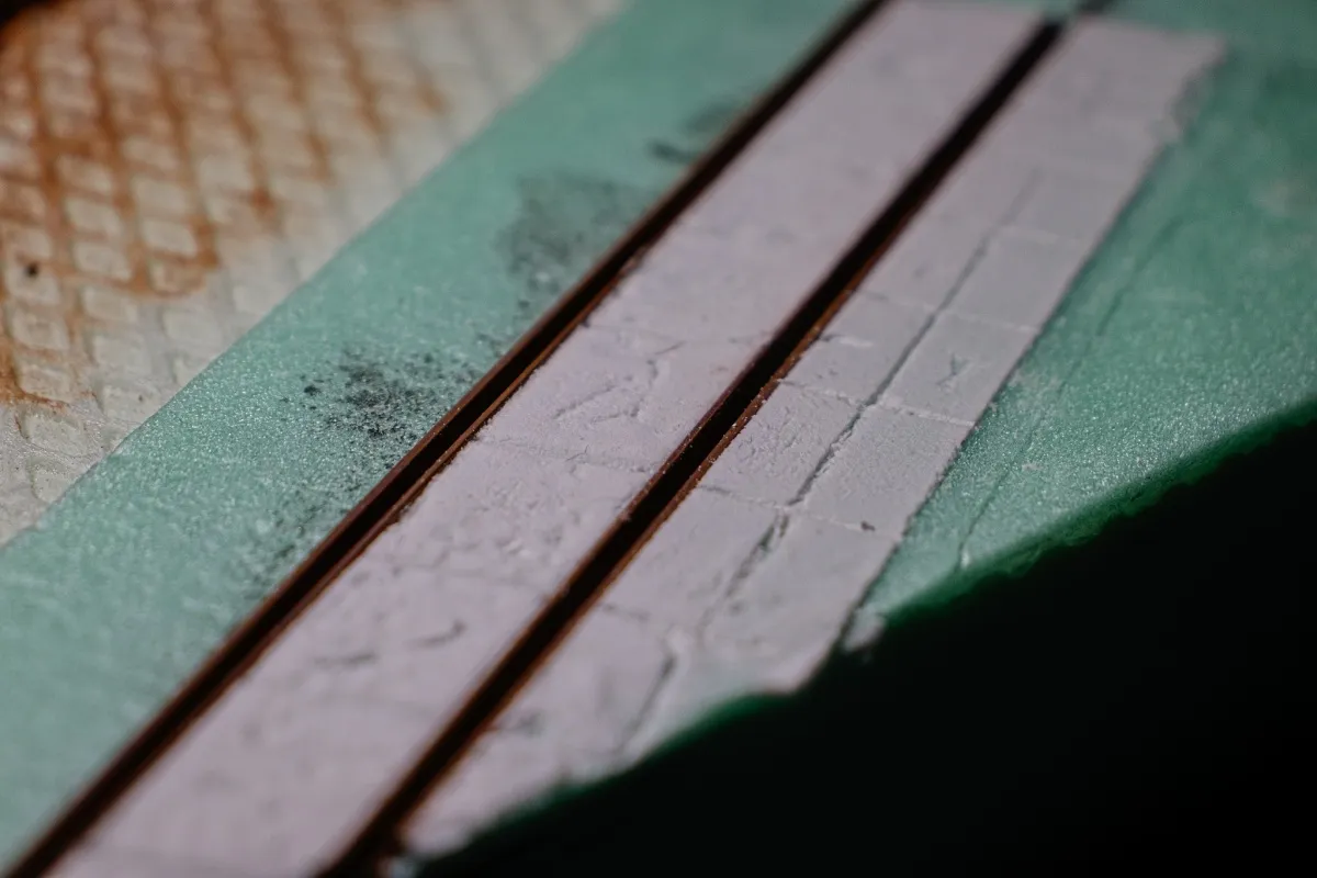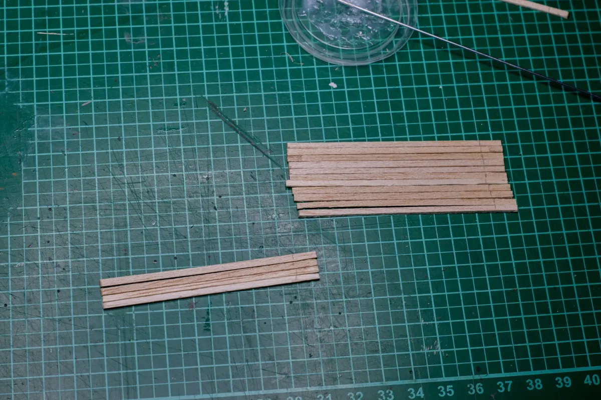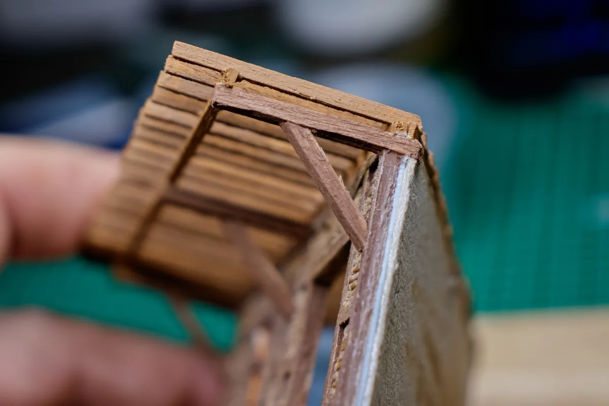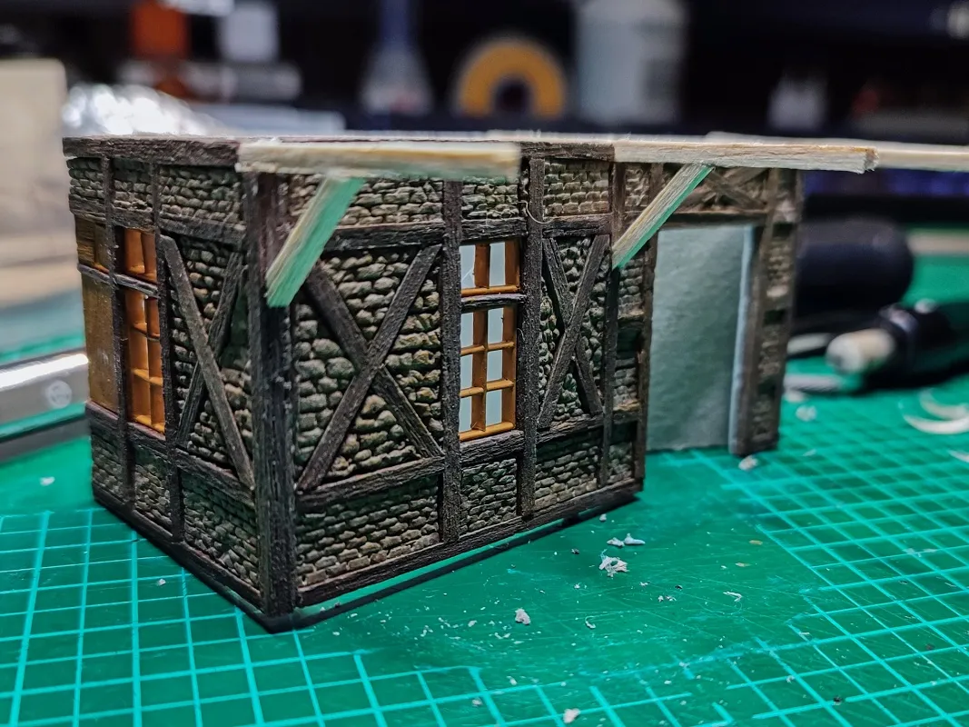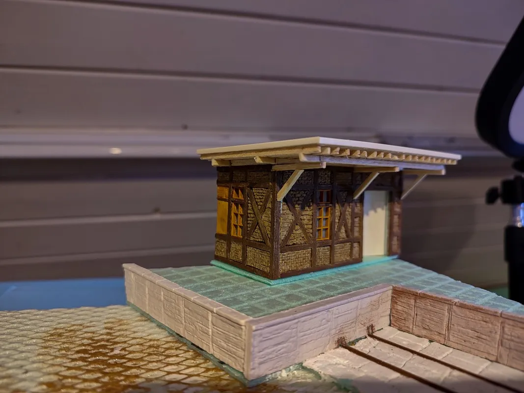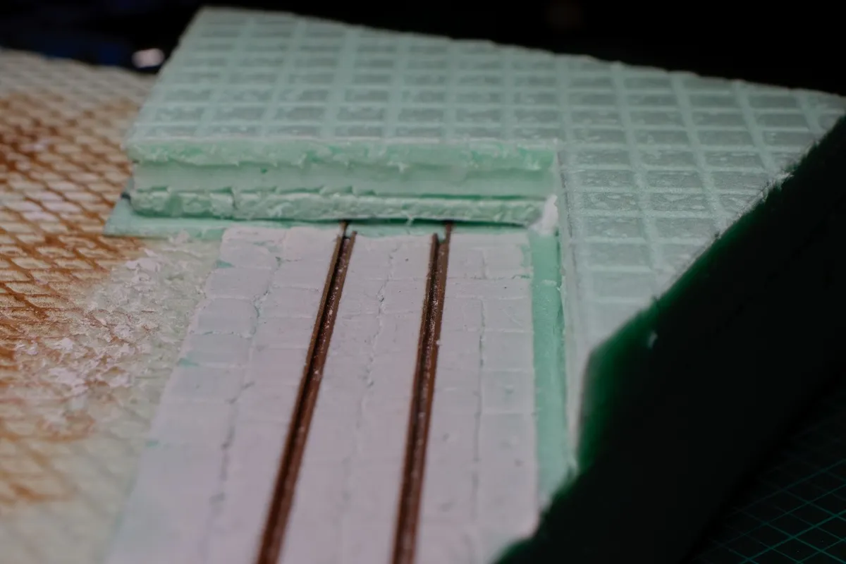 Diorama Rampe Farben für die LadestraßeFarbmuster bei einem Gipsstück.Die Ladestraße ist fertig - DetailaufnahmeDie Ladestraße ist fertigDie Ladestraße ist fertig verspachteltDie Ladestraße ist fertig verspachteltBergswerks Modellbauspachtel wird genutztDie Ladestraße ist fertig verspachteltDie Ladestraße ist fertig - GesamtübersichtDie Ladestraße ist fertig - DetailaufnahmeDie Ladestraße ist fertig - DetailaufnahmeDie Ladestraße ist fertig - GesamtübersichtDie Ladestraße ist fertig - Detailaufnahme... ein aufgefülltes Loch.... noch zu symstrischVerfahrensweise für das selbsthergestelltes KopfsteinpflasterZwischen Gleis und "Gipsstraße" fülle ich mit selbst geritzte Straße gefülltVergleich geritztes / geprägtes Styrofoam gegen Gipsabdruck aus der SpörleformEinbau der Tür und Stützen für den Träger. Erste BemahlungAbgüsse von Spörleform werden zurechtgelegtDetailaufnahme des LagerschuppensÜbersicht des DioramasEinritzen der Fläche auf der RampeDetails der LagertürTür zum Lagerschuppen. Auch die Winkel an der Tür werden versucht darzustellenEinbau der Tür zum Lagerschuppen und eines Doppel-T-Trägers aus KranschieneStellprobe mit LagerschuppenDteailaufnahme vom LagerschuppenStellprobeMit Modellbauspachtel von Bergswerk bekommt die Rampe eine DeckschichtStellprobe mit Deckschicht auf der RampeDie Rampe bekommt eine DeckschichtFertiges Dach - gealtert und mit KupferrinneVersuch der "Verkupferung" der Dachkante mit Liquid Copper Nr. 797 von vallejoStellprobe des Lagerschuppens auf dem DioramaVersuch der "Verkupferung" der Dachkante mit Liquid Copper Nr. 797 von vallejoStellprobe des Lagerschupppens auf dem DioramaAlterung des DachesUnterseite des Daches mit brauner Farbe eingestrichen.Der "Übeltäter" - Leider löst der Sekundenkleber die Färbung des "Kupferfolie"Leider löst der Sekundenkleber die Färbung des "Kupferfolie"Einfassung des Daches mit PVC-L-ProfilenAbmessung der Kupferfolie für die KupfereinfassungDetailaufnahme des Daches nach der BemalungDetailaufnahme des Daches nach der BemalungDetailaufnahme des Daches nach der BemalungDetailaufnahme des Daches nach der BemalungEinfärben des Unterbaues mit brauner FarbeNeuer Versuch des Daches. Das Sperrholz wird eingeritzt. Ähnlich einer HolzlattungWölbung des Daches nach dem trocknenDetailaufnahme der ungewollten Wölbung des Daches durch den HolzleimLeider wölbt sich das Dach durch den Kleber (Holzleim)Das Dach bekommt eine Dachkante aus PVC-ProfilenDas Dach bekommt eine Dachkante aus PVC-ProfilenProbeliegen des DachesProbeliegen der DachesStruktur / Feinheit / Farbe des Schleifpapiers (P400)Auf ein Träger sind Striche für die Breite der Bahnen aus SchleifpappierRückseite des Schleifpapiers mit Kennzeichung P400Detailaufnahme vom DachDetailaufnahme vom DachEin Stück nache dem anderenDetailaufnahme vom DachDetailaufnahme. Auch zwischen den Sparren wird aufgefülltUnterbau des DachesUnterbau des Daches ist fertigHolz für das DachDetailaufnahme der SparrenSparren des DachesSparren des DachesAbstützung der BalkenDie ersten Balken für das DachDie Wände des Lagerschuppens - StellprobeColoriereung der FensterStellprobeKurze Wand - Gefache fertig und die Fenster sind drin.Lange Wand - Gefache fertig und die Fenster sind drin.Aus dem "Muster" werden die Ziegel ausgeschnitten und eingefügt - 1:1Die "einfachen" Gefache sind fertigJedes einzelne Gefache wird mit Ziegel ausgefüllt.Erstellung der Zeigel für das Kreuzgefache. Das Kreuz wurde zuerst eingedrückt und dann die Ziegel eingeritzt.Jedes einzelne Gefache wird ausgefüllt1. Gefache mit ZiegelwandSupermakro ... Zieglwand1. Colorierung mit steingrauZiegelwand zum Vergleich eine 1-Cent-Münzefertige Ziegelwand für die GefacheErstellung ZiegelwandStellprobe der WändeDetailaufnahme StänderwerkStänderwerk mit Abtönfarbe braun bemaltDetailaufnahme. Das Ständerwerk hat Farbe bekommenVergleich Zeichnung un ModellDas Ständerwerk für die beiden Wände steht.Immer weider vergleichen ....geritzte Ziegelwand, Ständerwerk und Figur zur Probe1. Ständerwek und Test, ob das Verhältnis stimmtVersuch einer Ziegelwand1. Versuche eine ZiegelwandZeichnung 1:1 beider Wände des LagershuppensDie Rampe mit Grundrissplatte des LagerhausesStellprobe der Rampe. Mit Pins ist der Grundriss des Lagerhauses auf der Rampe zusehenalles eingespachtelt, graviert und die Rampe ist im Rohbau fertigArbeitstisch zum gießen der FormenGießen der Gipsteile aus SpörleformenEingravieren der Stöße zu den Beton-PlattenÜbersicht von oben.Stellprobe mit RampewändeErste Schicht ModellbauspachtelAbkleben der Gleise, bevor Spachtel drauf kommtDamit keine weiß durchscheint, wird alles mit Revellfarben angestrichenZuerst kommt 2mm Trittschalldämmung und dann Modelllbauspachtel von BergswerkFarbe getrocknetDetailaufnahme vom Farbauftrag mit RevellfarbenZweiter Farbauftrag mit Revell Rost mattRost für die GleiseErster Farbauftrag für die GleiseLinks aufgebohrt und verschliffen. Rechts Ursprung aus dem BausatzRost für die Gleise mit Burnt Umper von VallejoÜberblick aller Teile während dem ZusammenbausJede gegossene Platte, auch wenn kaputt, wird genutzt.Lage auf dem Diorame. Perfekt.Test mit den Radsätzen, wie weit kann ich mit den T-Profilen an die SchienenGanz schön eng. Aber es ist ein Diorama und dafür ist es gut.Fertiges Schienenstück für die StraßeDie T-Profile sind verklebt.Test, ob die Idee mit dem T-Profil so passt und die Räder genug Spiel haben.Basteltischansicht.Benutzter Sekundenkleber von BergswerkErstes Teil ist geklebtAnrauen des Polystorol für das kleben.Beide Gleise sind mit Sekundenkleber auf das Polystorol geklebtGenaues ausrichten der Gleise in den Gleisspanner3 mm Polystorol wird auf die Gleise geklebt.Genaues einspannen der Schienen in die GleisspannerAnrauen der Unterseite der Schienen, damit sie besser kleben.Inspiration aus dem Buch "Perfekt bis ins Detail"Erster Versuch das Gleis zu versenken.Mein Basteltisch nach dem ersten Basteltag.Gle