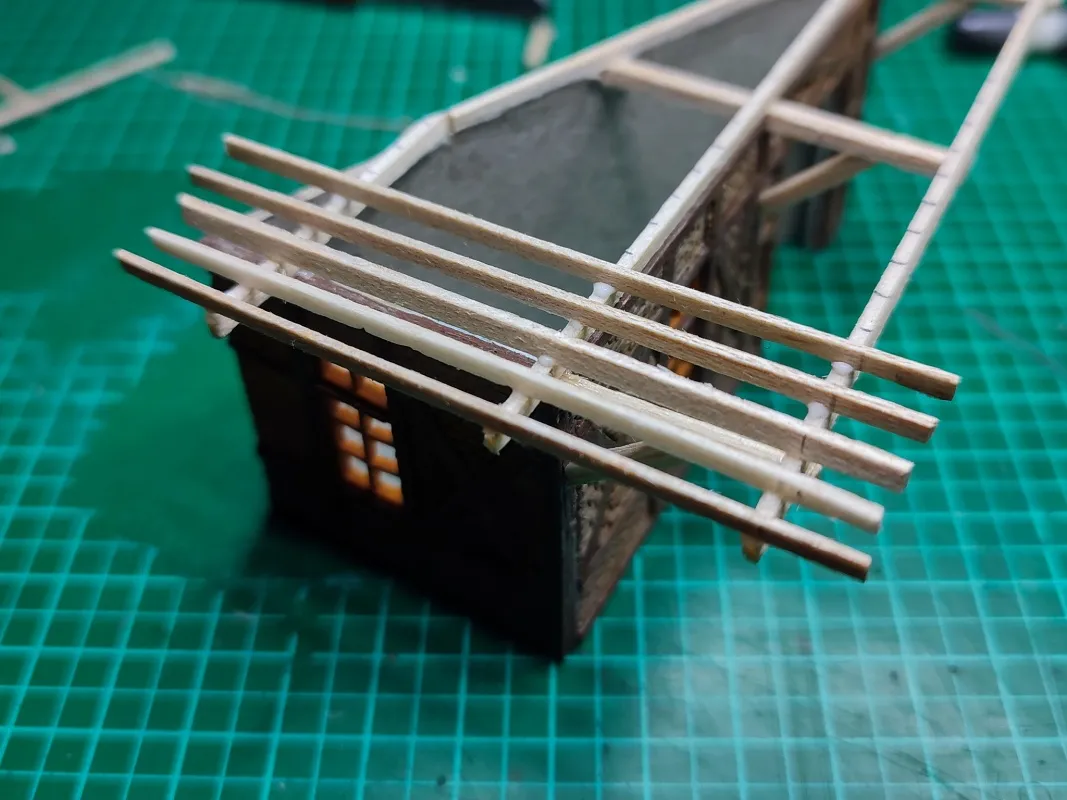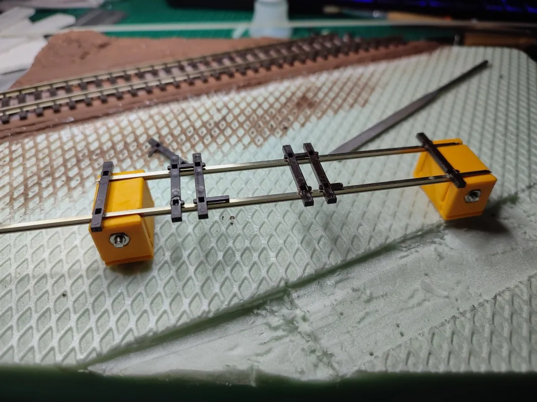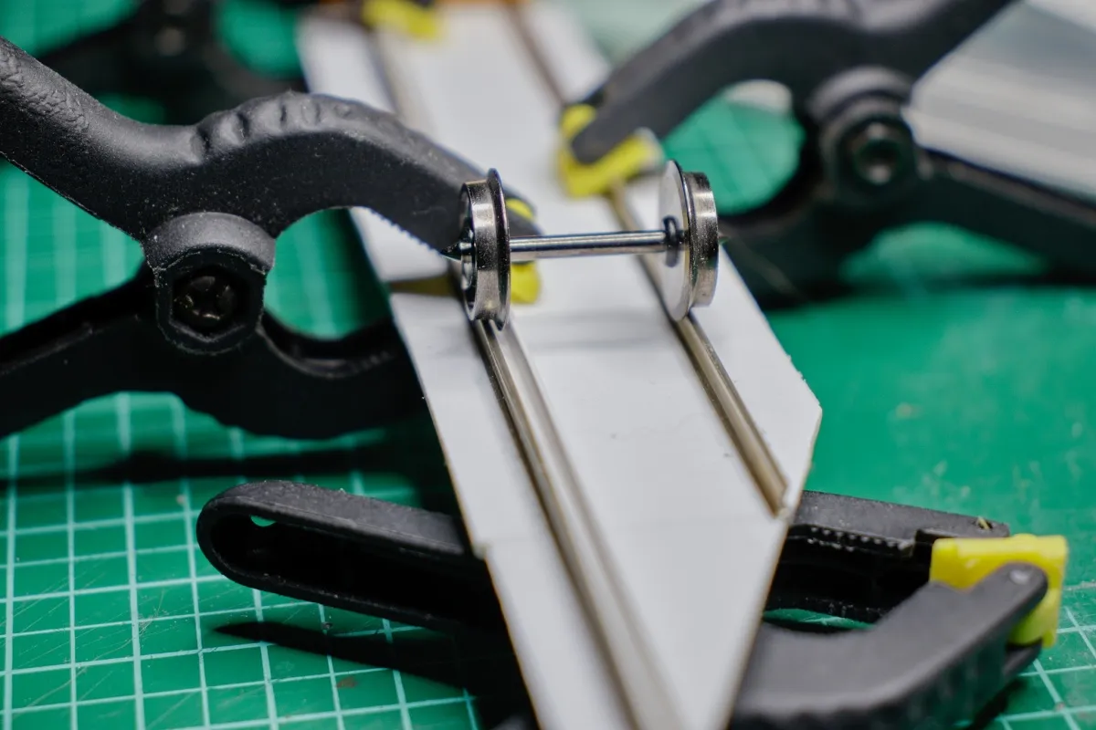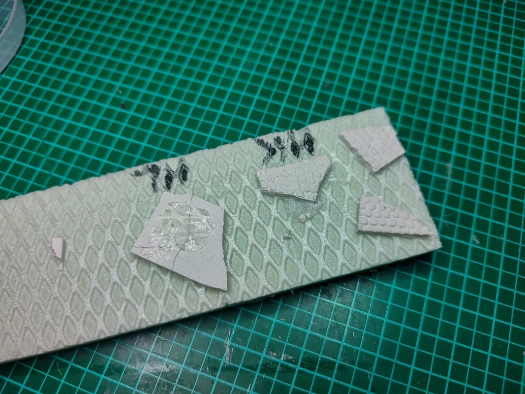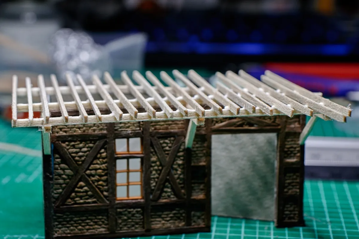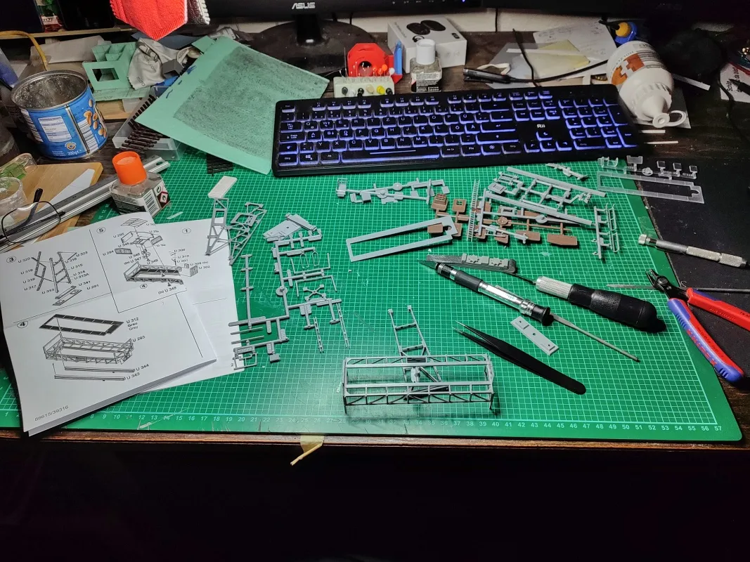 Diorama Rampe Farben für die LadestraßeFarbmuster bei einem Gipsstück.Die Ladestraße ist fertig - DetailaufnahmeDie Ladestraße ist fertigDie Ladestraße ist fertig verspachteltDie Ladestraße ist fertig verspachteltBergswerks Modellbauspachtel wird genutztDie Ladestraße ist fertig verspachteltDie Ladestraße ist fertig - GesamtübersichtDie Ladestraße ist fertig - DetailaufnahmeDie Ladestraße ist fertig - DetailaufnahmeDie Ladestraße ist fertig - GesamtübersichtDie Ladestraße ist fertig - Detailaufnahme... ein aufgefülltes Loch.... noch zu symstrischVerfahrensweise für das selbsthergestelltes KopfsteinpflasterZwischen Gleis und "Gipsstraße" fülle ich mit selbst geritzte Straße gefülltVergleich geritztes / geprägtes Styrofoam gegen Gipsabdruck aus der SpörleformEinbau der Tür und Stützen für den Träger. Erste BemahlungAbgüsse von Spörleform werden zurechtgelegtDetailaufnahme des LagerschuppensÜbersicht des DioramasEinritzen der Fläche auf der RampeDetails der LagertürTür zum Lagerschuppen. Auch die Winkel an der Tür werden versucht darzustellenEinbau der Tür zum Lagerschuppen und eines Doppel-T-Trägers aus KranschieneStellprobe mit LagerschuppenDteailaufnahme vom LagerschuppenStellprobeMit Modellbauspachtel von Bergswerk bekommt die Rampe eine DeckschichtStellprobe mit Deckschicht auf der RampeDie Rampe bekommt eine DeckschichtFertiges Dach - gealtert und mit KupferrinneVersuch der "Verkupferung" der Dachkante mit Liquid Copper Nr. 797 von vallejoStellprobe des Lagerschuppens auf dem DioramaVersuch der "Verkupferung" der Dachkante mit Liquid Copper Nr. 797 von vallejoStellprobe des Lagerschupppens auf dem DioramaAlterung des DachesUnterseite des Daches mit brauner Farbe eingestrichen.Der "Übeltäter" - Leider löst der Sekundenkleber die Färbung des "Kupferfolie"Leider löst der Sekundenkleber die Färbung des "Kupferfolie"Einfassung des Daches mit PVC-L-ProfilenAbmessung der Kupferfolie für die KupfereinfassungDetailaufnahme des Daches nach der BemalungDetailaufnahme des Daches nach der BemalungDetailaufnahme des Daches nach der BemalungDetailaufnahme des Daches nach der BemalungEinfärben des Unterbaues mit brauner FarbeNeuer Versuch des Daches. Das Sperrholz wird eingeritzt. Ähnlich einer HolzlattungWölbung des Daches nach dem trocknenDetailaufnahme der ungewollten Wölbung des Daches durch den HolzleimLeider wölbt sich das Dach durch den Kleber (Holzleim)Das Dach bekommt eine Dachkante aus PVC-ProfilenDas Dach bekommt eine Dachkante aus PVC-ProfilenProbeliegen des DachesProbeliegen der DachesStruktur / Feinheit / Farbe des Schleifpapiers (P400)Auf ein Träger sind Striche für die Breite der Bahnen aus SchleifpappierRückseite des Schleifpapiers mit Kennzeichung P400Detailaufnahme vom DachDetailaufnahme vom DachEin Stück nache dem anderenDetailaufnahme vom DachDetailaufnahme. Auch zwischen den Sparren wird aufgefülltUnterbau des DachesUnterbau des Daches ist fertigHolz für das DachDetailaufnahme der SparrenSparren des DachesSparren des DachesAbstützung der BalkenDie ersten Balken für das DachDie Wände des Lagerschuppens - StellprobeColoriereung der FensterStellprobeKurze Wand - Gefache fertig und die Fenster sind drin.Lange Wand - Gefache fertig und die Fenster sind drin.Aus dem "Muster" werden die Ziegel ausgeschnitten und eingefügt - 1:1Die "einfachen" Gefache sind fertigJedes einzelne Gefache wird mit Ziegel ausgefüllt.Erstellung der Zeigel für das Kreuzgefache. Das Kreuz wurde zuerst eingedrückt und dann die Ziegel eingeritzt.Jedes einzelne Gefache wird ausgefüllt1. Gefache mit ZiegelwandSupermakro ... Zieglwand1. Colorierung mit steingrauZiegelwand zum Vergleich eine 1-Cent-Münzefertige Ziegelwand für die GefacheErstellung ZiegelwandStellprobe der WändeDetailaufnahme StänderwerkStänderwerk mit Abtönfarbe braun bemaltDetailaufnahme. Das Ständerwerk hat Farbe bekommenVergleich Zeichnung un ModellDas Ständerwerk für die beiden Wände steht.Immer weider vergleichen ....geritzte Ziegelwand, Ständerwerk und Figur zur Probe1. Ständerwek und Test, ob das Verhältnis stimmtVersuch einer Ziegelwand1. Versuche eine ZiegelwandZeichnung 1:1 beider Wände des LagershuppensDie Rampe mit Grundrissplatte des LagerhausesStellprobe der Rampe. Mit Pins ist der Grundriss des Lagerhauses auf der Rampe zusehenalles eingespachtelt, graviert und die Rampe ist im Rohbau fertigArbeitstisch zum gießen der FormenGießen der Gipsteile aus SpörleformenEingravieren der Stöße zu den Beton-PlattenÜbersicht von oben.Stellprobe mit RampewändeErste Schicht ModellbauspachtelAbkleben der Gleise, bevor Spachtel drauf kommtDamit keine weiß durchscheint, wird alles mit Revellfarben angestrichenZuerst kommt 2mm Trittschalldämmung und dann Modelllbauspachtel von BergswerkFarbe getrocknetDetailaufnahme vom Farbauftrag mit RevellfarbenZweiter Farbauftrag mit Revell Rost mattRost für die GleiseErster Farbauftrag für die GleiseLinks aufgebohrt und verschliffen. Rechts Ursprung aus dem BausatzRost für die Gleise mit Burnt Umper von VallejoÜberblick aller Teile während dem ZusammenbausJede gegossene Platte, auch wenn kaputt, wird genutzt.Lage auf dem Diorame. Perfekt.Test mit den Radsätzen, wie weit kann ich mit den T-Profilen an die SchienenGanz schön eng. Aber es ist ein Diorama und dafür ist es gut.Fertiges Schienenstück für die StraßeDie T-Profile sind verklebt.Test, ob die Idee mit dem T-Profil so passt und die Räder genug Spiel haben.Basteltischansicht.Benutzter Sekundenkleber von BergswerkErstes Teil ist geklebtAnrauen des Polystorol für das kleben.Beide Gleise sind mit Sekundenkleber auf das Polystorol geklebtGenaues ausrichten der Gleise in den Gleisspanner3 mm Polystorol wird auf die Gleise geklebt.Genaues einspannen der Schienen in die GleisspannerAnrauen der Unterseite der Schienen, damit sie besser kleben.Inspiration aus dem Buch "Perfekt bis ins Detail"Erster Versuch das Gleis zu versenken.Mein Basteltisch nach dem ersten Basteltag.Gle